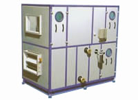 ZK 系列组合式空调机组分通用型机组( ZK )、净化型机组( ZKJ )两种。处理风量 2000 ~ 300000m 3 /h 。我公司生产的空调机组各项性能(如冷、热量、噪音、密封性)目前均已达到国内领先水平。